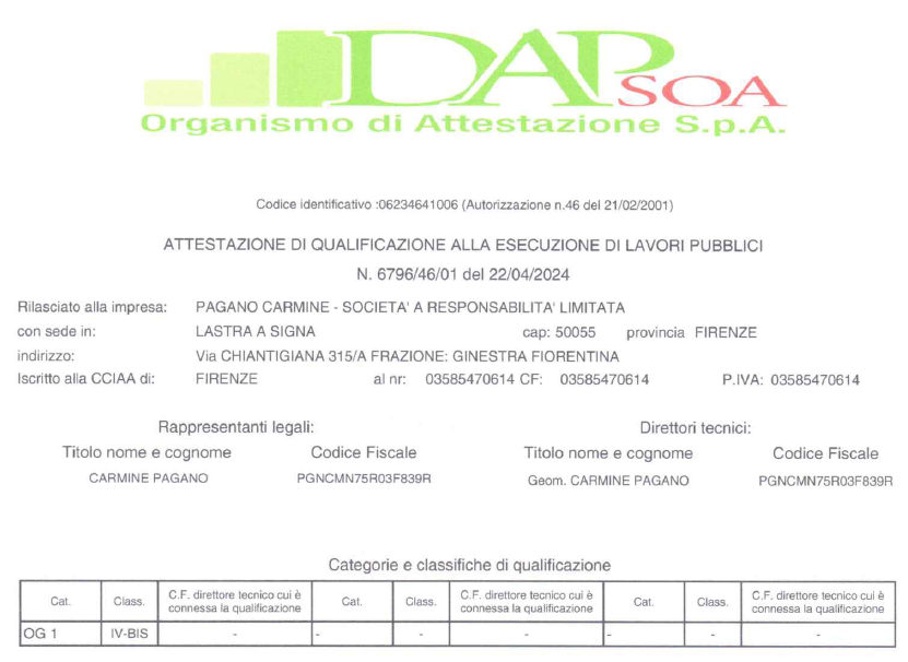 Scopri le certificazioni di PAGANO CARMINE SRL, garanzia di qualità e affidabilità nel settore edile. ISO 9001 e Attestazione SOA: il nostro impegno per l'eccellenza.